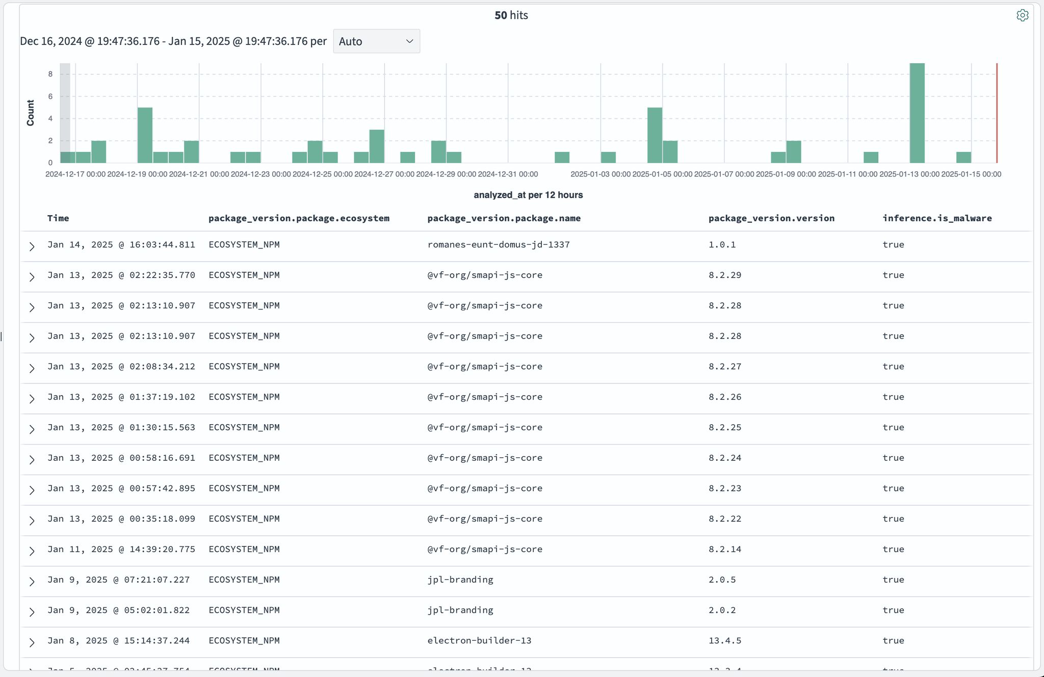Our Malicious Package Scanner deployed to monitor npm registry for malicious packages identified similar patterns in multiple packages published during the month of January 2025. In fact a simple query identified 50+ such packages.