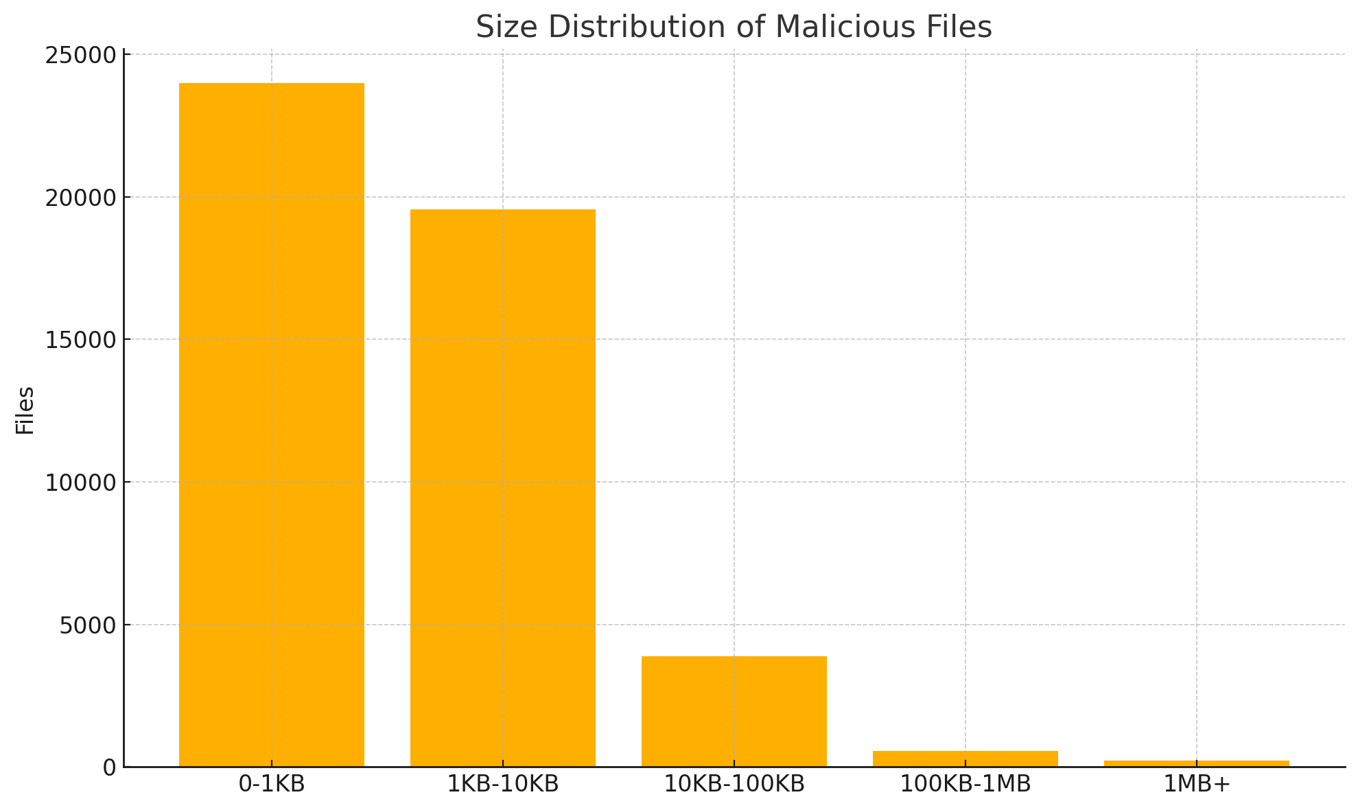 Interestingly, the size of the malicious packages is very small with 90% of them being less than 10KB.