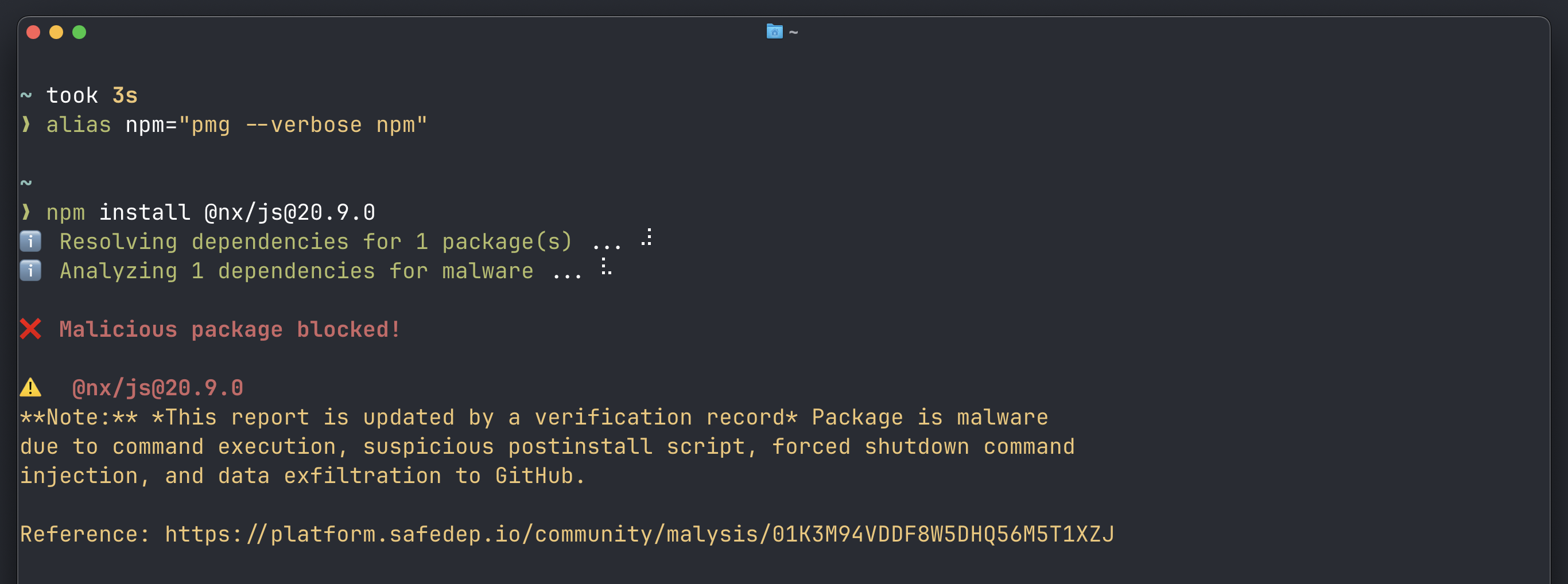 SafeDep open source tools vet and pmg integrate with our package analysis system. They will detect malicious packages and alert developers as soon as our system detects a malicious package.
